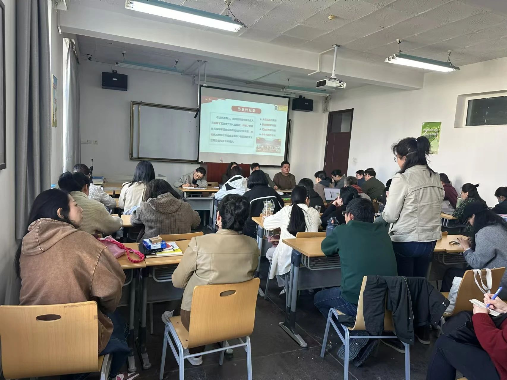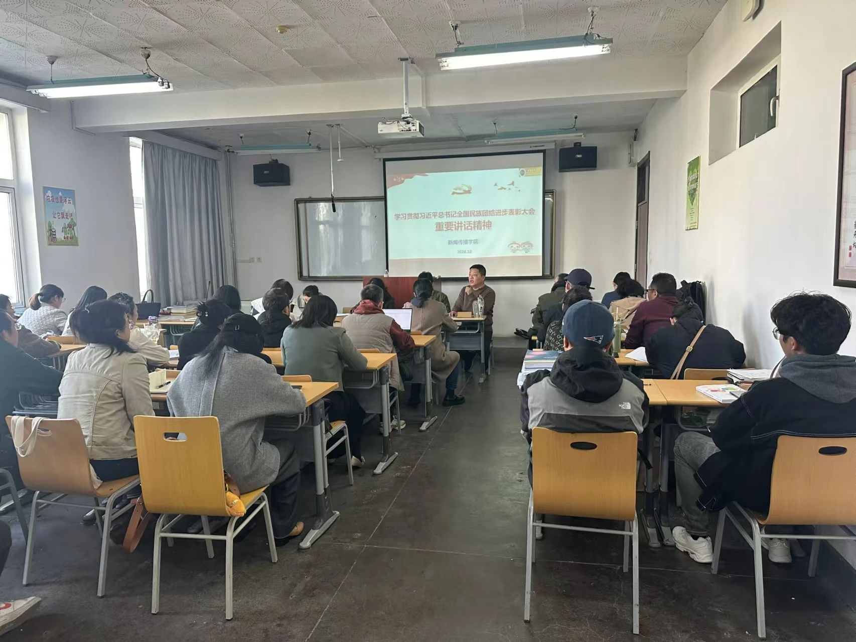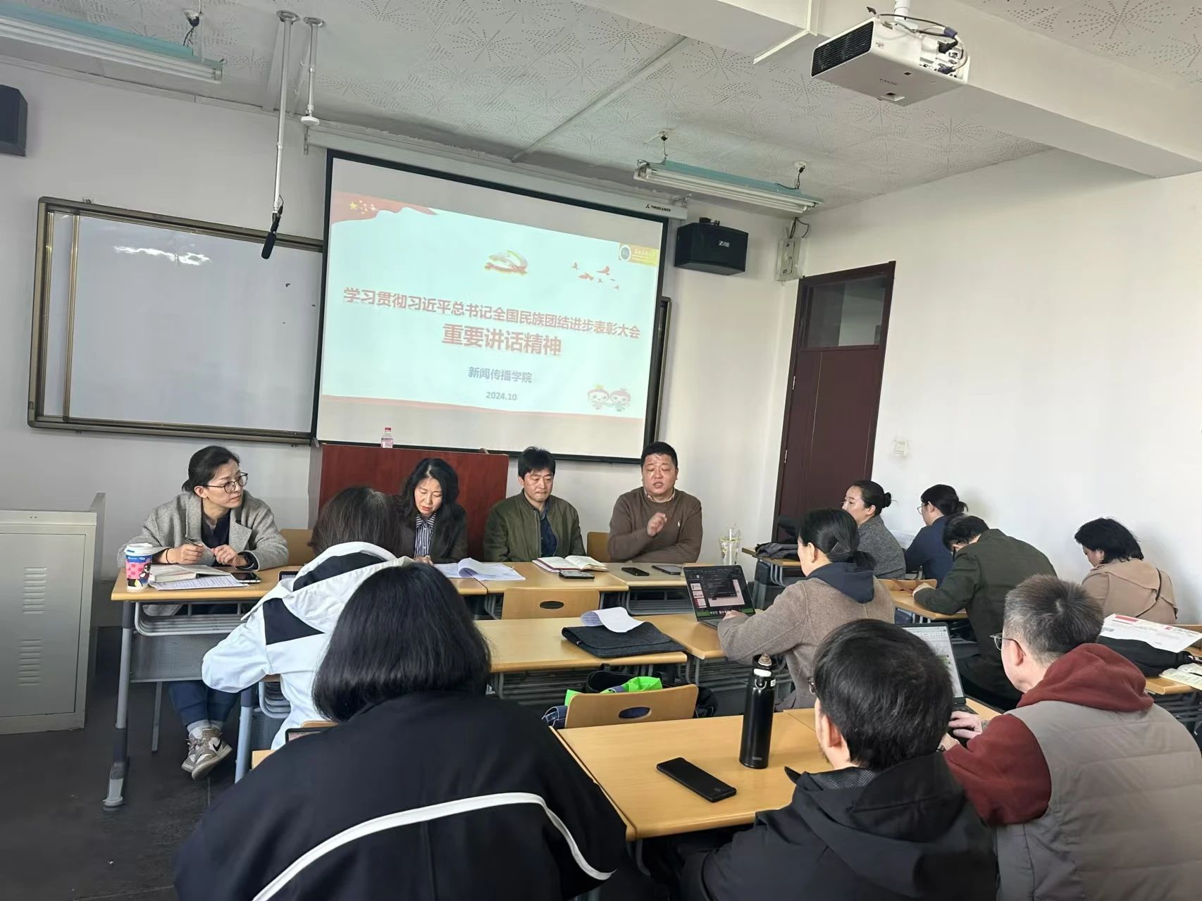 學院工會主席馬月香首先帶領全體教職工集體學習了習近平總書記在全國民族團結進步表彰大會上的講話。全體教職工要把學習貫徹習近平總書記重要講話和全國民族團結進步表彰大會精神作為學院黨委當前和今后一個時期的重要政治任務,與學習貫徹黨的二十屆三中全會精神、全國教育大會精神貫通起來,抓實抓牢師教職工政治理論學習。