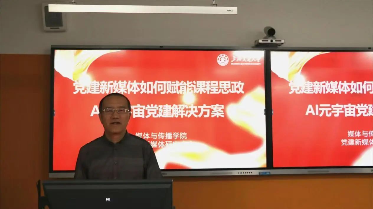 隨后,王昊副研究員將話題轉向黨建新媒體如何賦能課程思政,提出了AI元宇宙黨建解決方案,將黨建理念與新媒體技術相結合的創新思路,并分享了他在實踐中的成功案例。他強調,黨建新媒體作為傳播黨的聲音、弘揚主流價值的重要載體,對于提升課程思政的針對性和實效性具有重要意義。通過結合人工智能技術,黨建新媒體可以更加精準地把握學生需求,提供更加個性化的學習資源和互動體驗,從而有效增強課程思政的吸引力和感染力。