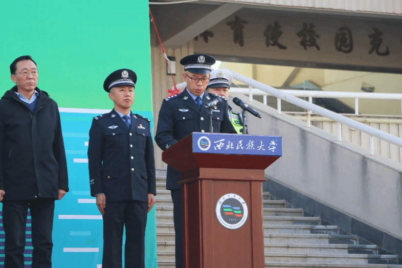 今年12月2日是第十二個“全國交通安全日”。上午10時,由榆中縣道路交通安全委員會聯合西北民族大學共同主辦的2023年交通安全宣傳日系列活動啟動儀式在榆中校區民康體育館前舉行。西北民族大學黨委副書記、副校長李輝,榆中縣委常委、統戰部部長王廷宏,榆中縣政府副縣長、道路安全委員會主任、公安局局長金小棟,西北民族大學保衛工作部部長郭天龍,各學院領導等出席活動,本次活動由榆中縣道路交通安全委員會副主任、公安局黨委委員、副局長翟翱主持。此次活動的主題是“文明交通,你我同行”,新聞傳播學院正處級輔導員趙維勝老師帶領135名新傳學子參加此次活動,深入開展交通安全規則意識學習和法治教育。