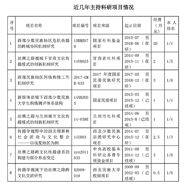 3.西北民族大學新聞傳播學院"西北民族文化傳播研究中心"研究員。