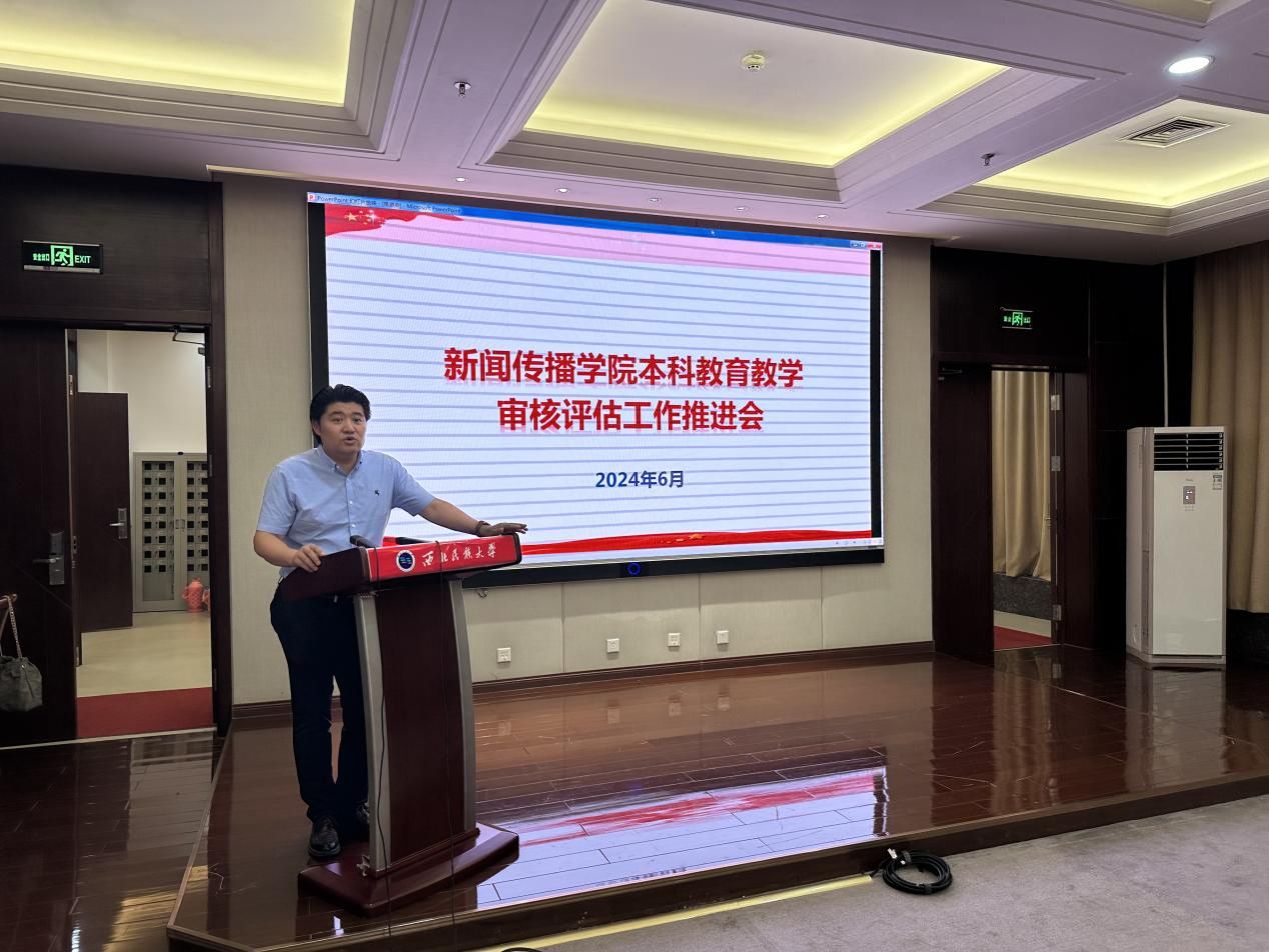 為扎實做好學院本科教育教學審核評估的各項準備工作,6月11日,新聞傳播學院召開本科教育教學審核評估工作推進會。會議由學院黨委書記劉曜主持,全體教職工參加。
