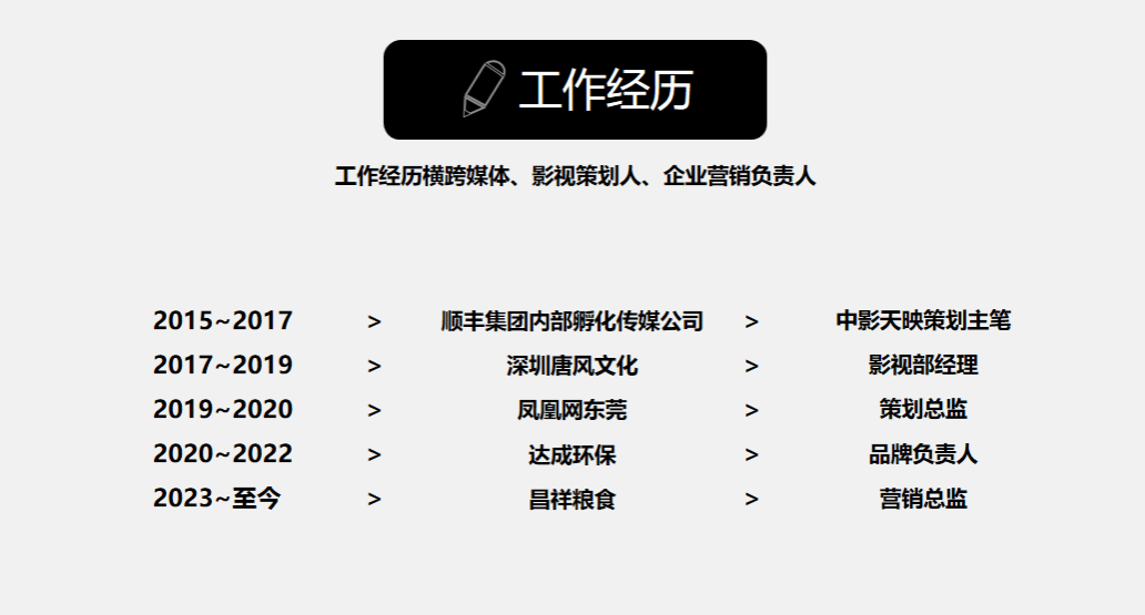 工作經歷橫跨媒體、影視策劃人、企業營銷負責人