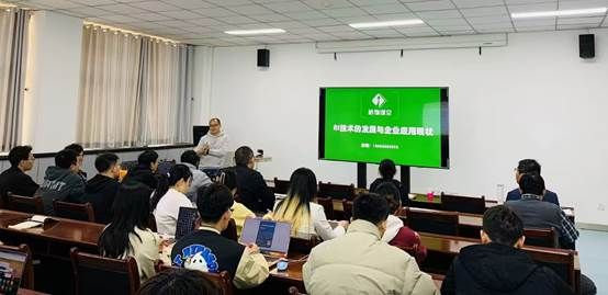 在講座最后的師生交流環(huán)節(jié),在場(chǎng)師生就“人工智能技術(shù)發(fā)展與企業(yè)應(yīng)用現(xiàn)狀”主題與高明博士展開互動(dòng)交流,高明博士就大家集中關(guān)注的話題給予了詳細(xì)解答。