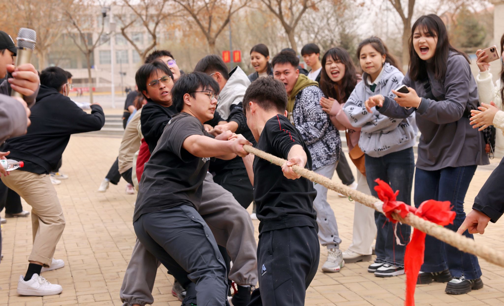 哨聲一響,雙方口號震天,氣勢軒昂。有的學生臉憋得通紅絲毫不放松,有的齜牙咧嘴用盡渾身解數,還有的干脆閉上眼睛鉚足了勁兒往后拉。女生們更是不甘示弱,一個個咬緊牙關,將巾幗不讓須眉的精神風貌揮灑得淋漓盡致。場外的班級拉拉隊也不甘示弱,加油聲、吶喊助威聲直入云霄。經過激烈角逐,2022級理科1、4合班脫穎而出,摘得桂冠,2022級文科4班獲亞軍,2022級文科2班、文科3班獲季軍。