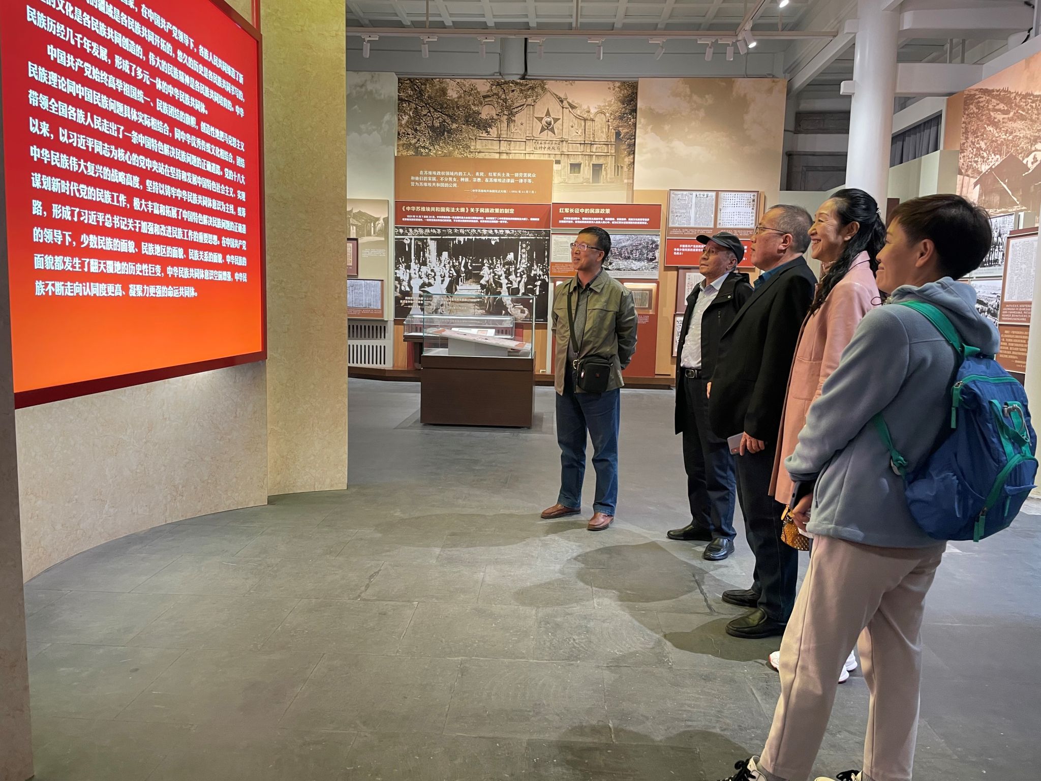 “大團結”展廳主要展現中國共產黨從成立至今一脈相承的中華民族大團結的深邃思想與豐富實踐。徜徉在一件件精美展品、一件件珍貴古籍前,教師們感懷不已。從中華人民共和國成立的那一天起,中華各民族團結成為友愛合作的大家庭,形成了你中有我,我中有你,誰也離不開誰的血脈關系。各民族在黨的民族政策的光輝照耀下,手足情深,眾志成城,共同走上了社會主義的康莊大道。團結奮斗是中國人民創造歷史偉業的必由之路。中華各民族共同培育了革骨鼎新、勇于發明的偉大創造精神;勤勞堅韌、自強不息的偉大奮斗精神;齊心協力、同舟共濟的偉大團結精神;向往美好、不懈追求的偉大夢想精神。在強國建設、民族復興的新征程上,各族人民的前進動力更加強大,奮斗精神更加昂揚,必勝信念更加堅定,煥發出更為強烈的歷史自覺和主動精神,以中國式現代化建設中華民族現代文明,以中華民族共同體建設推動構建人類命運共同體,共創中華民族的美好未來。