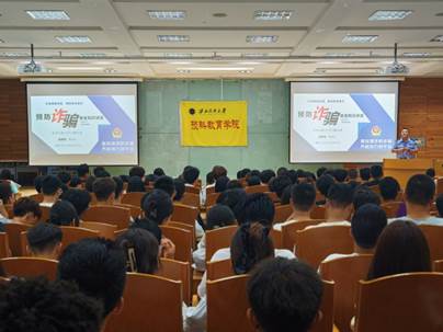 在防詐反詐教育環節,陳警官結合多年的工作經驗,詳細介紹了各種電信詐騙的手段和特點。他以生動的語言和真實的案例,剖析了詐騙分子的心理和作案流程,讓同學們對電信詐騙有了更直觀的認識。同時,陳警官還為同學們提供了實用的防詐反詐技巧,如不隨意透露個人信息、不輕易點擊陌生鏈接、遇到可疑情況及時報警等。