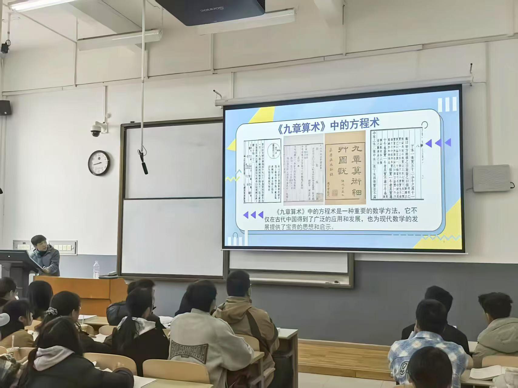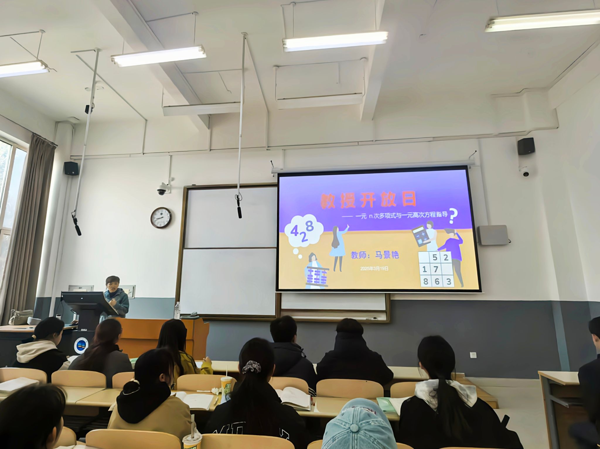 3月19日上午,數(shù)學(xué)教研室馬景艷老師的教授開放日活動(dòng)在致真樓103教室正式開啟。此次開放日的主題為“一元n次多項(xiàng)式和一元高次方程數(shù)學(xué)奧秘與中華優(yōu)秀傳統(tǒng)文化的融合”。馬老師憑借深厚的學(xué)術(shù)功底和獨(dú)特的教學(xué)風(fēng)格,為學(xué)院近百名學(xué)生呈上了一場(chǎng)融合數(shù)學(xué)深度與文化魅力的精彩講座。