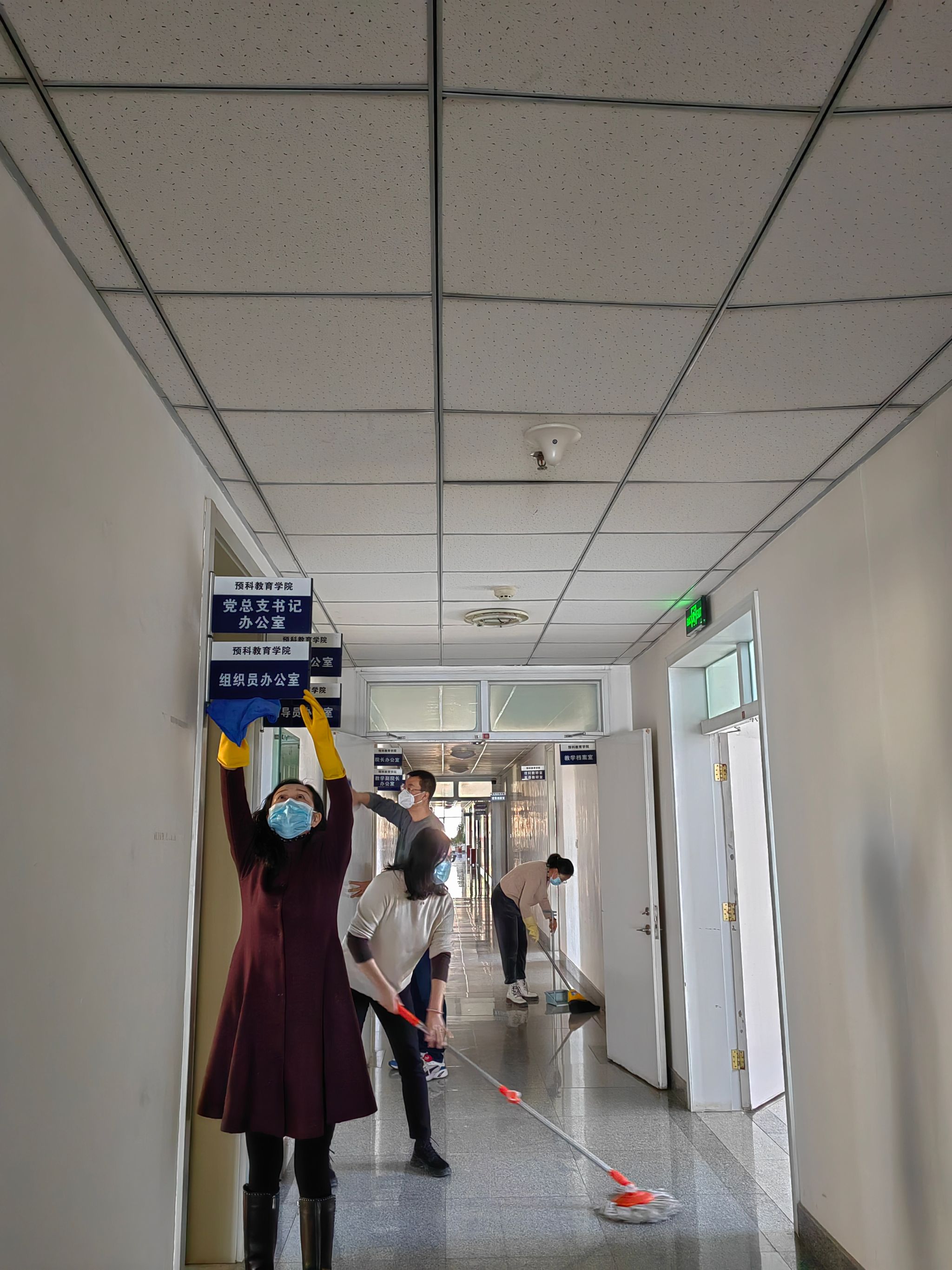 3月3日,學院組織教職工打掃辦公樓宇衛生。
