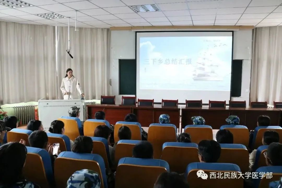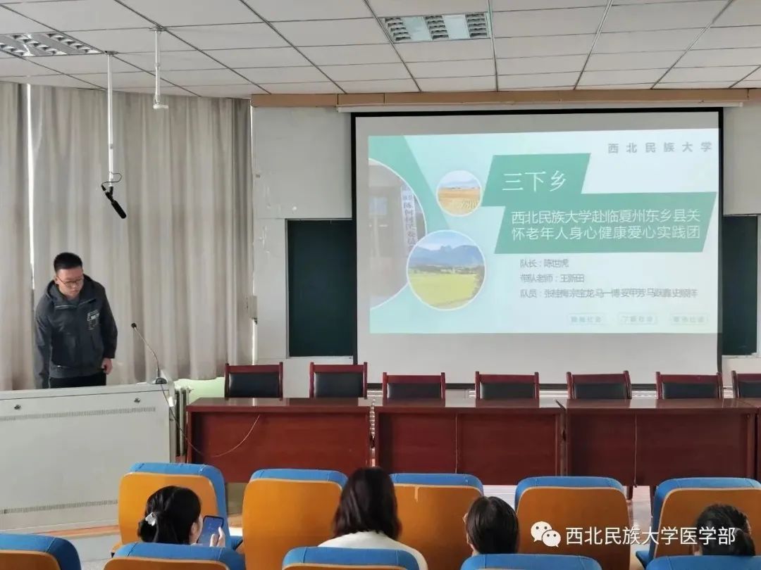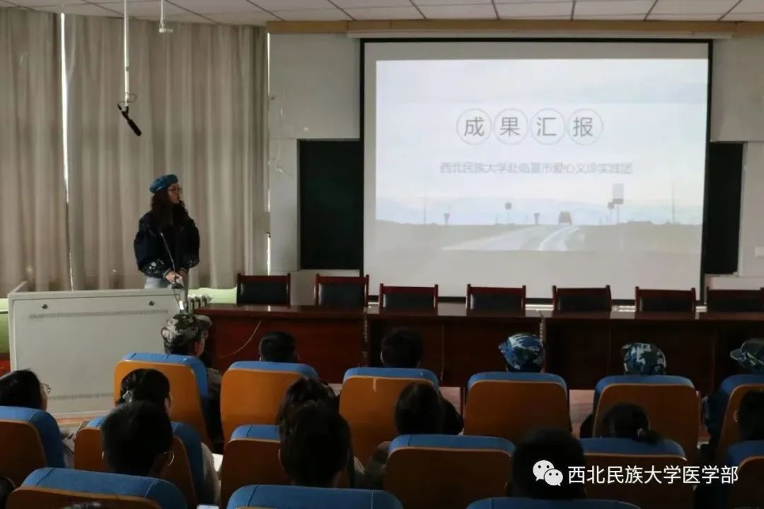與此同時,醫學部關愛老年人身心健康愛心服務實踐團、“三高”防治科普實踐團、愛心義診實踐團等醫療服務實踐團的代表們,分別講述了他們在甘肅省臨夏市、東鄉縣、積石山縣,甘肅臨潭,河南欒川,四川南充等地耐心為當地群眾免費量血壓、測血糖,進行身體檢查志愿服務實踐活動。