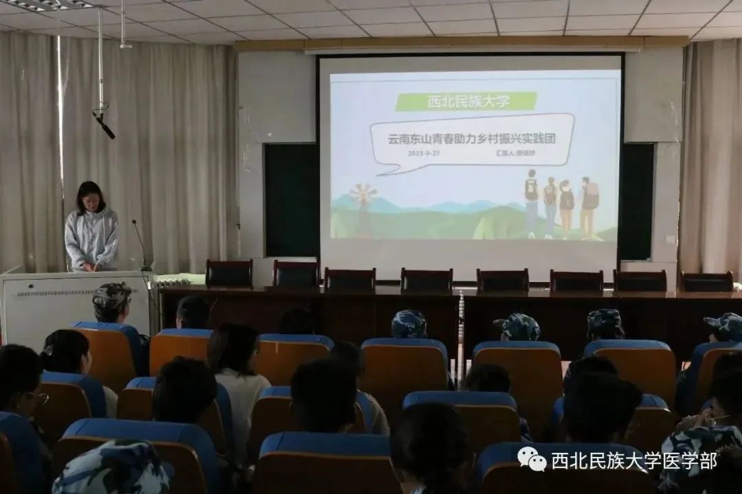 醫學部團委書記李娜向大家介紹了學部2023年暑期社會實踐的基本情況,對本次暑期社會實踐的成果進行了概括。她講到今年學部組建了13支團隊,組織200余名師生赴西藏、青海、云南、河南、四川等5個省區,圍繞紅色研學、鄉村振興、志愿服務等7大類別安全有序開展地“學習二十大 永遠跟黨走 奮進新征程”暑期“三下鄉”社會實踐活動,取得了顯著成績。