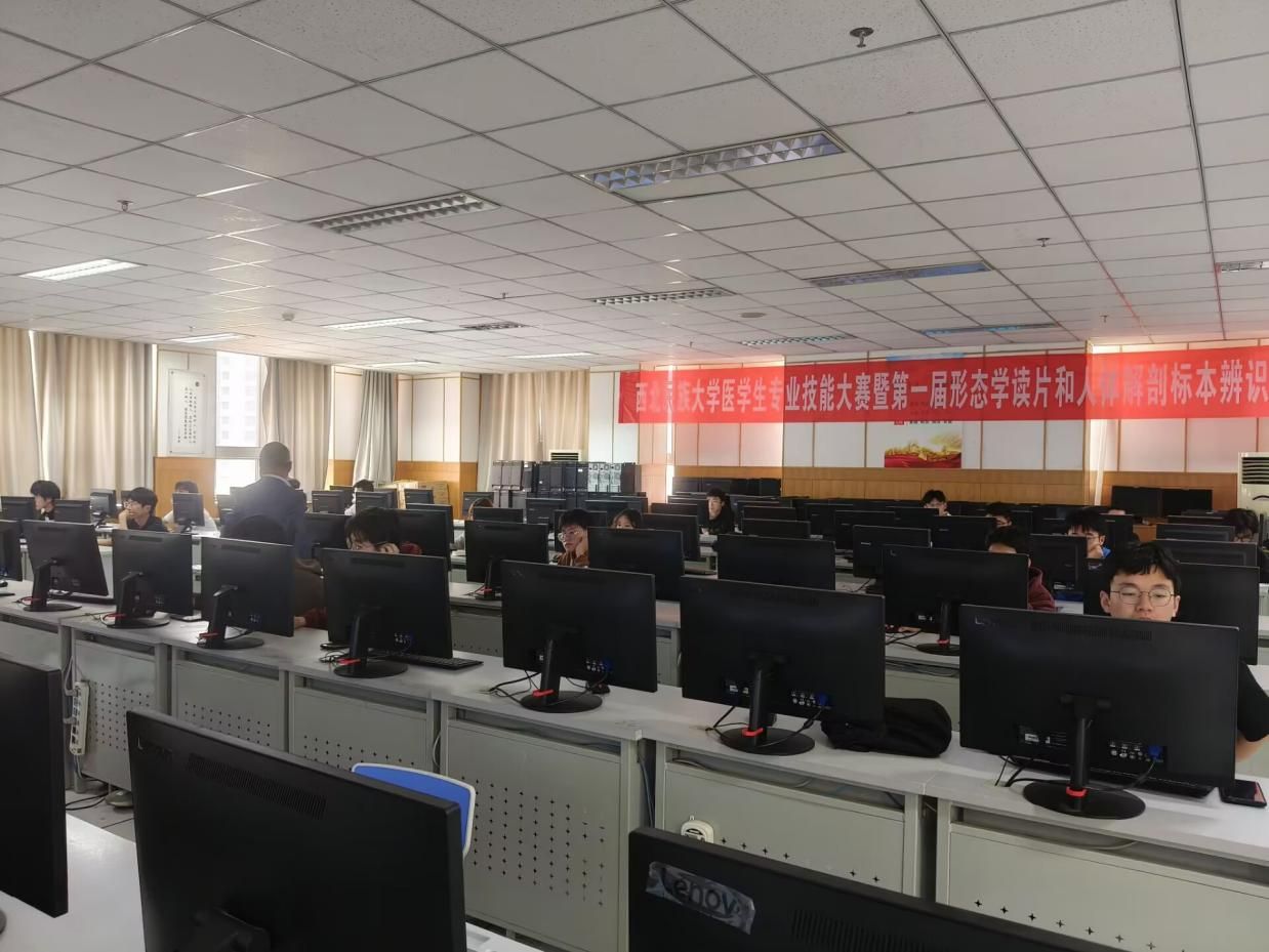本次比賽設有六個學科賽道,分別是人體解剖學、組織學、病理學、寄生蟲學、病原微生物學以及混合賽道,吸引了400余名醫學生參與。比賽在文津樓六個機房舉行,400余名考生登錄“醫學形態學數字化教學平臺”和“數字人體解剖系統平臺”,進入考試系統認真作答。經過激烈的角逐,一批優秀的學生憑借出色的觀察能力和辨識技巧脫穎而出。最終,各個賽道推選前20名同學參加第二屆高等醫學院校大學生形態學讀片和人體解剖標本辨識技能大賽。
