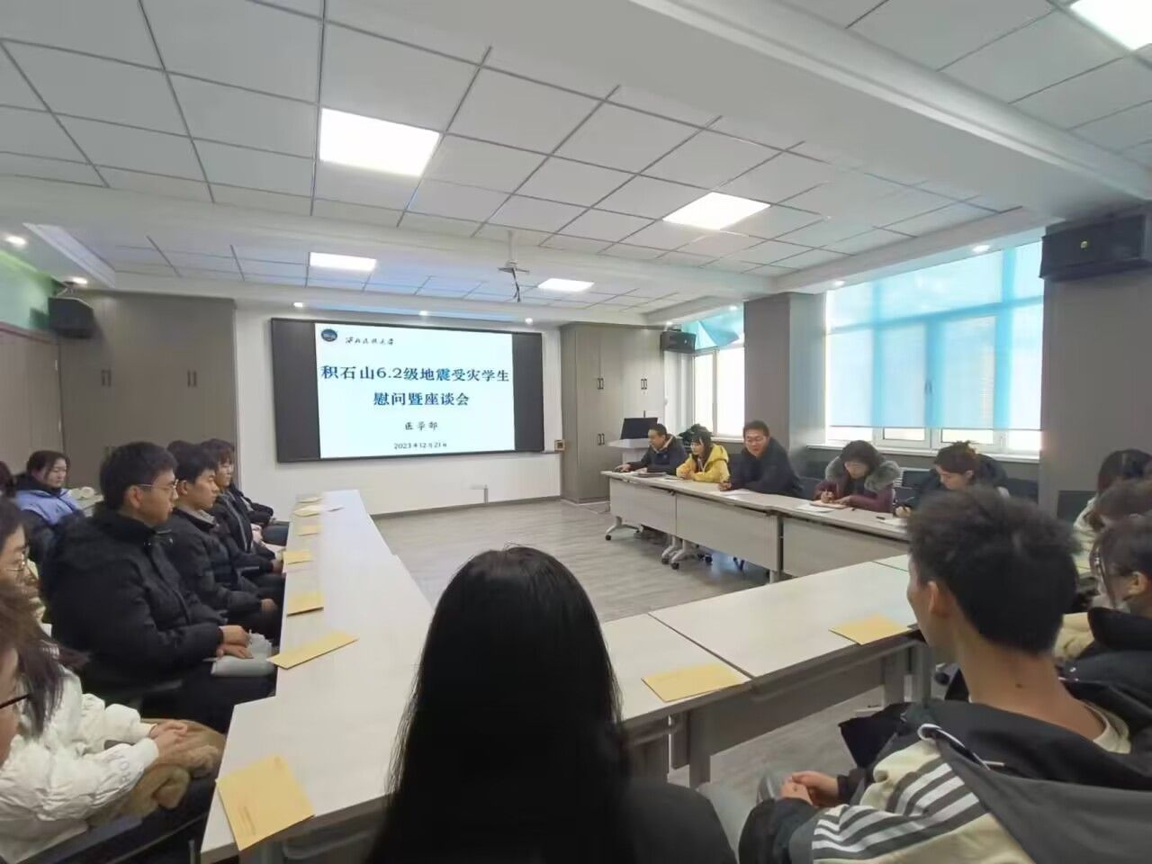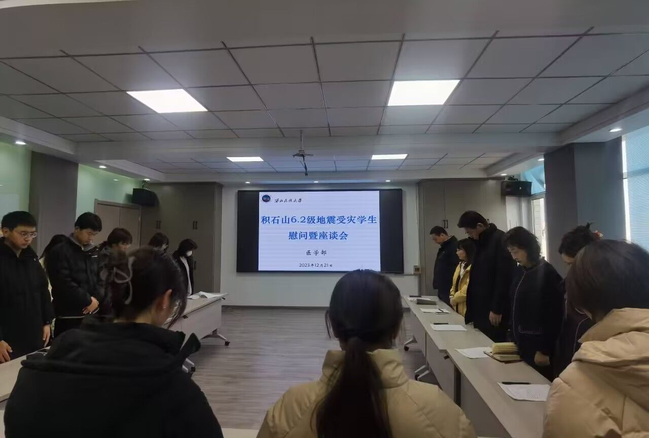 12月18日,甘肅臨夏州積石山縣發生6.2級地震以來,按照學校黨委的統一部署,醫學部黨委高度重視學生家庭受災情況,第一時間組織班導師開展地震災區學生摸排工作,做好家庭受災學生思想政治工作,全方位做好受災家庭學生專項資助和幫扶工作。12月21日上午,醫學部在醫學樓7樓會議室組織召開地震受災學生慰問座談會。學部黨委書記郭力,黨委副書記、五級職員葉瑜英,學生管理辦公室、輔導員出席了座談會,17名地震家庭受災學生代表應邀參加。