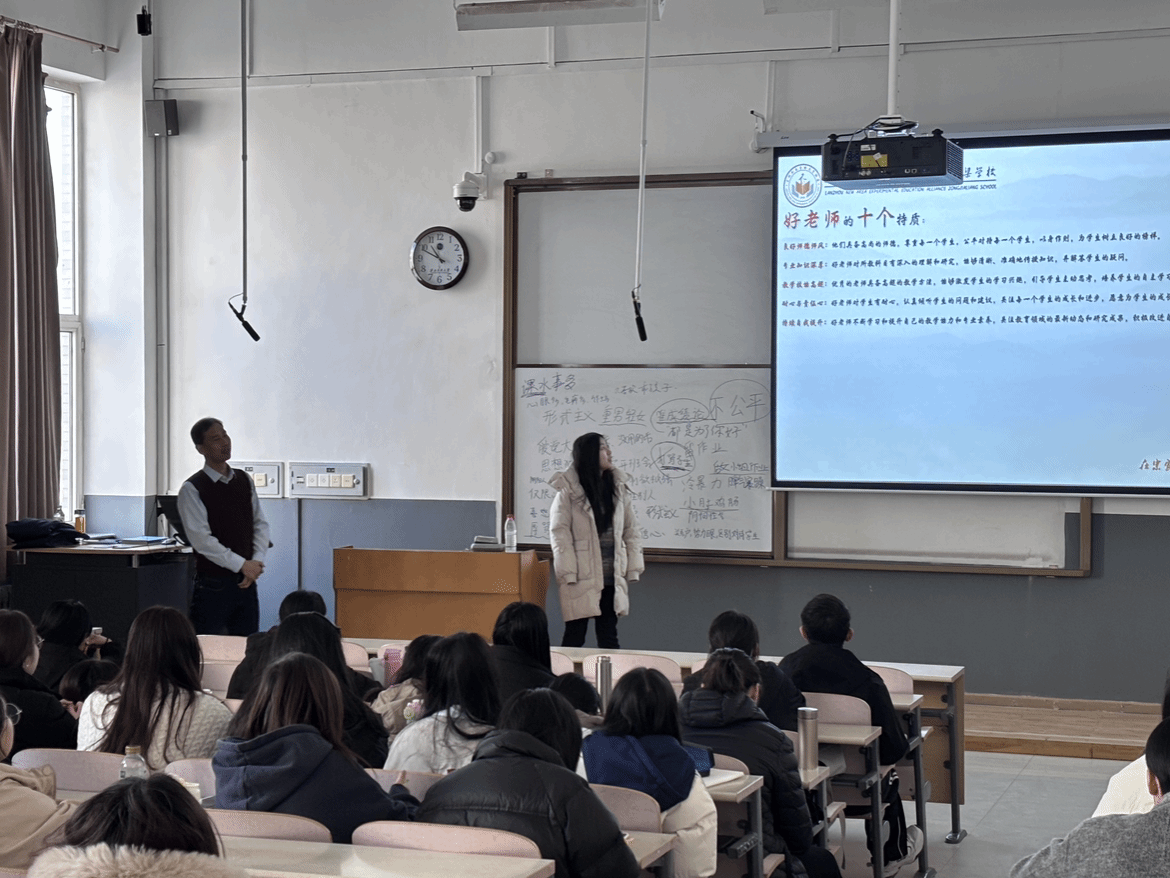 在致真樓106教室,何軍喜老師以“叩問教育初心”為主題,與學生們展開了一場關于教師職業情操的深度對話。課程伊始,他拋出“你討厭怎樣的老師”“你向往成為怎樣的教師”兩個問題,引發學生熱烈討論。隨后,他結合自身從教經歷,為同學們講述了“好老師的十個特質”,并深入解讀了“四有”好老師標準,通過引用現代詩《教育的理想》,何老師闡釋了“為了所有人,為了人的所有”的教育理念,引導學生思考教育的本質和教師的使命。課程尾聲,何老師深情寄語:“教師不僅是知識的傳遞者,更是學生精神成長的擺渡人。”