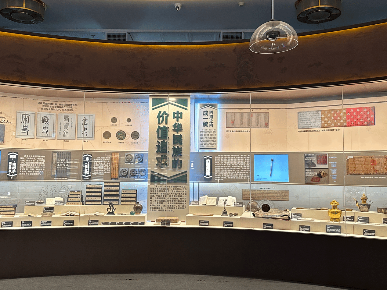 “大一統(tǒng)”單元展廳從思想理念、制度實(shí)踐、價(jià)值追求三個(gè)維度展現(xiàn)中華民族和中華文明延續(xù)不斷的歷時(shí)基因。