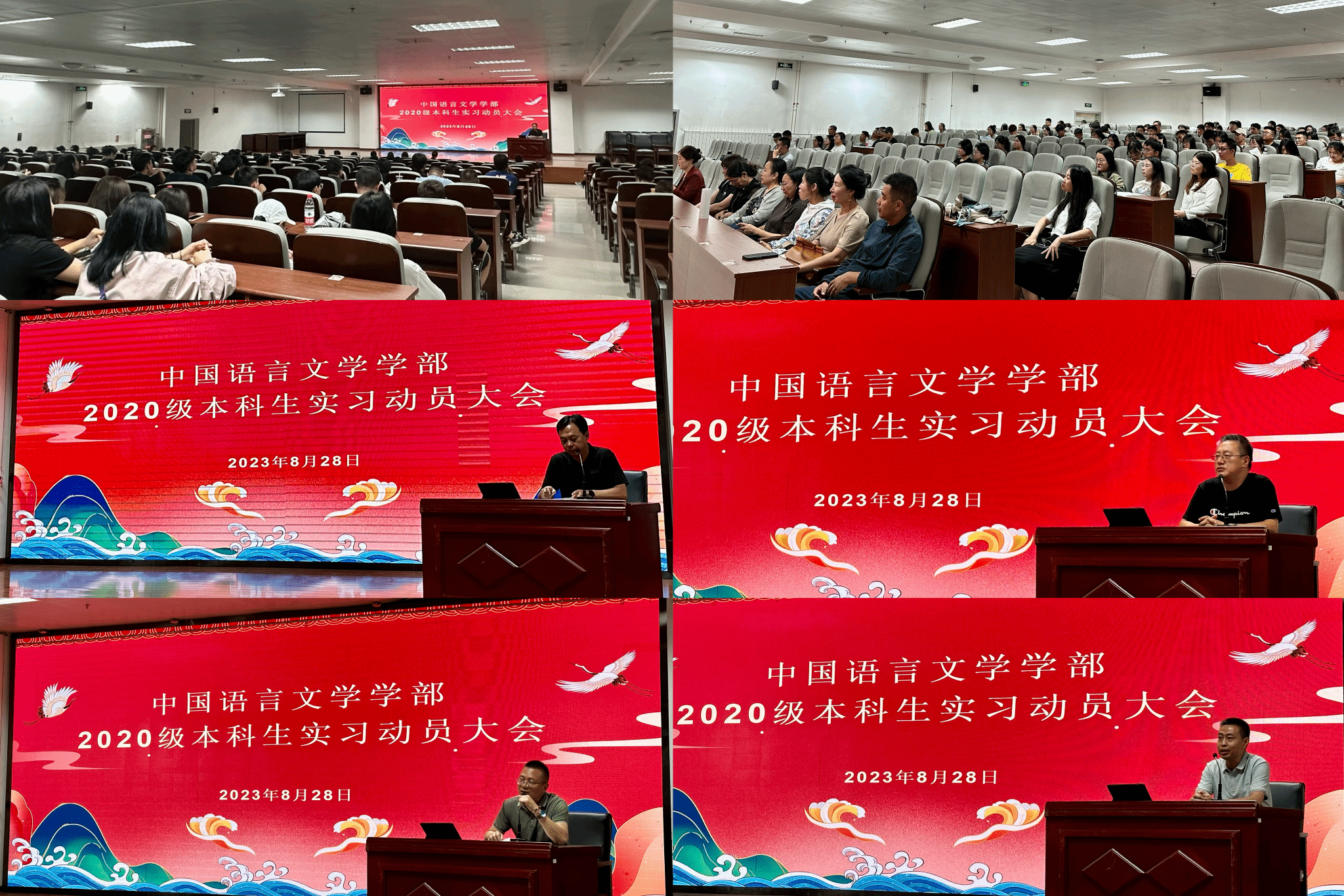為保證實習工作順利開展,2023年8月28日,中國語言文學學部在榆中校區就業大廳以線上線下相結合的模式召開了實習動員大會,學部黨委常務副書記馬鴻波、副主任楊德明、副主任韓曉清、實習指導老師、教學管理辦公室副主任昂秀措及全體實習生參加大會。會議強調了實習期間的安全和紀律等相關事宜。通過此次會議,同學們增強了社會責任感,提高了安全防范意識,為實習工作的有序開展打下了堅實基礎。
