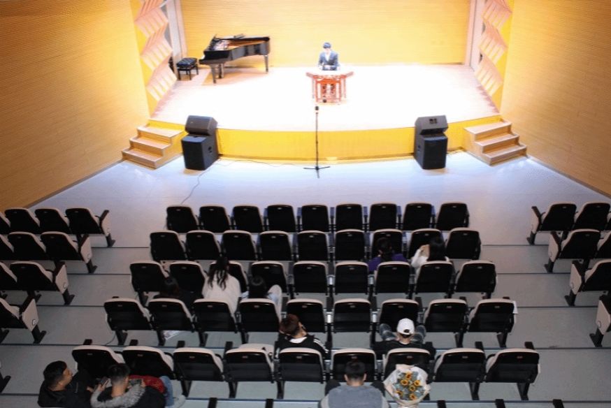 課堂教學與舞臺實踐教學相結合的專業教學方式是學院辦學的一大特色,學院把理論體系、創作、排演、觀摩納入整個教學過程,形成了課堂教學、開放性實踐課程與舞臺實踐的教學體系,先后組建了合唱團、交響樂團、民族管弦樂團、明·凈箏樂團、“八音”國樂學生社團、“石榴籽”學生社團等專業團體,各專業基本能夠依托上述團體開展舞臺實踐。