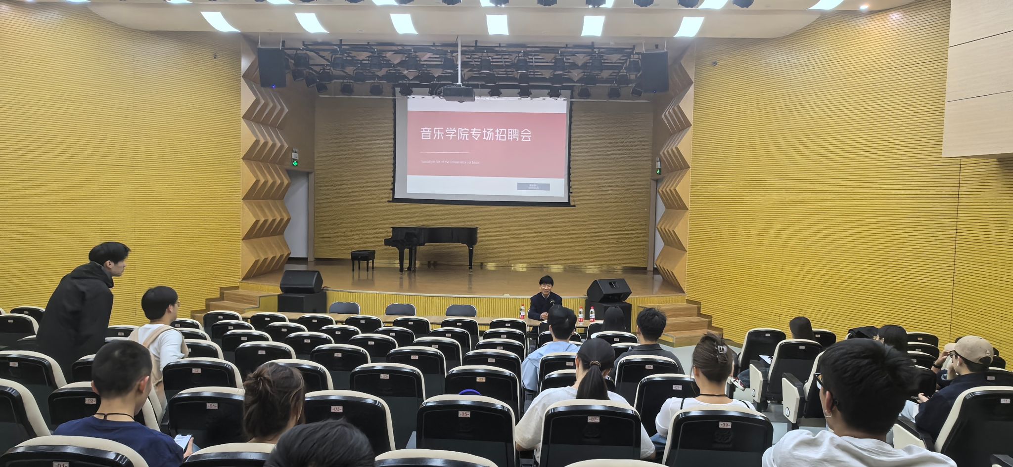 近日,音樂學院舉辦2場專場招聘會,邀請行業內公司負責人來院進行就業宣講暨專場招聘會,學院2025屆在校畢業生和輔導員參加招聘會。