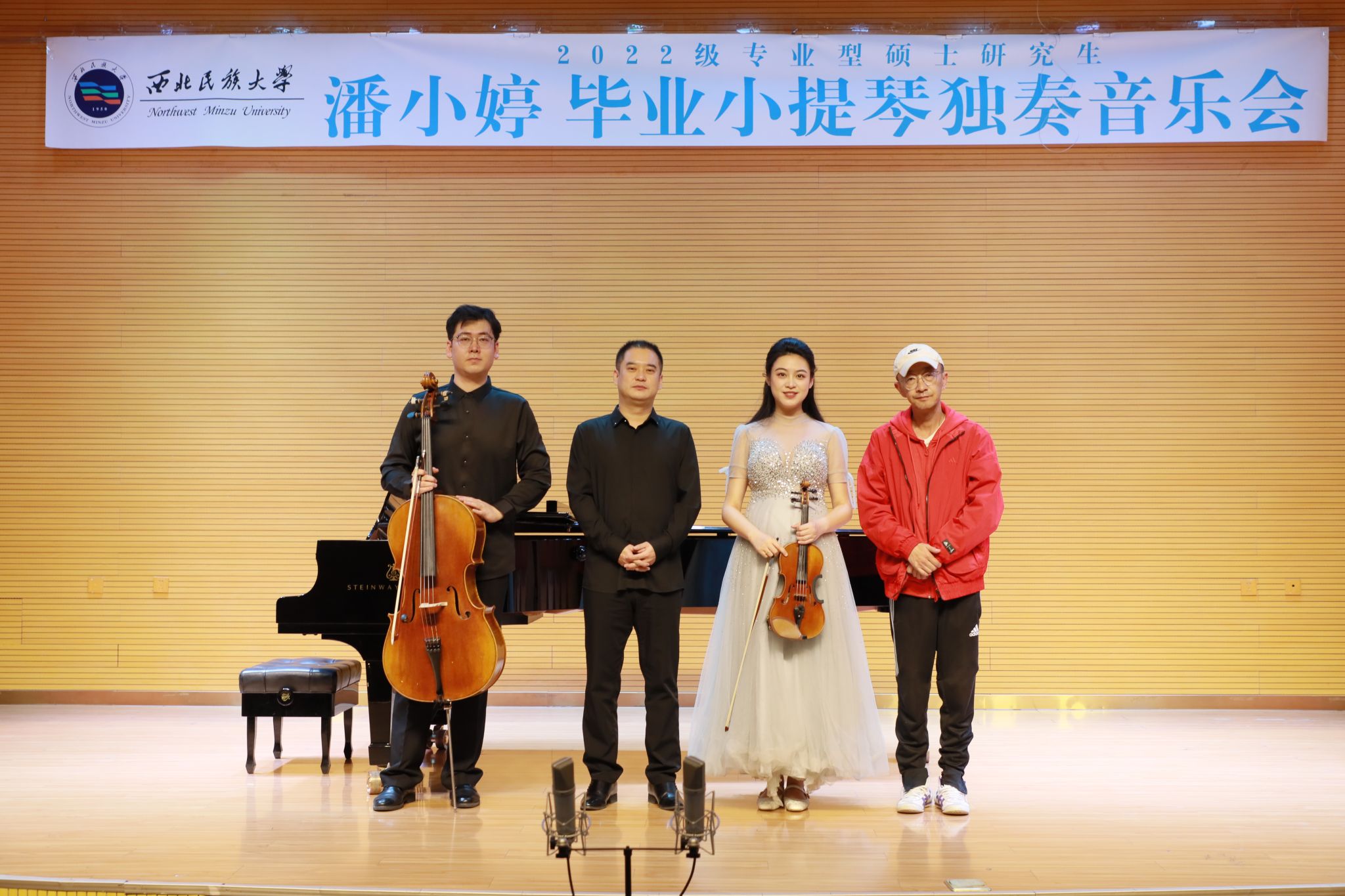 2024年10月21日,2022級專業型碩士研究生潘小婷成功舉辦小提琴畢業音樂會。整場音樂會歷時一個小時,共演奏了4首小提琴作品。分別是:楊善樂《夏夜》、雷振邦《花兒為什么這樣紅》、沃爾夫岡·阿馬德烏斯·莫扎特《G大調第18號小提琴和鋼琴奏鳴曲,K.301(K.293a)》全樂章以及重奏曲弗朗茨·約瑟夫·海頓《D大調鋼琴、小提琴和大提琴三重奏》第一、二樂章。音樂會藝術指導由卜文濤老師擔任,特邀嘉賓吳皓秋。參加本場音樂會的評委老師有楊艷霞、鐘力、馬波。