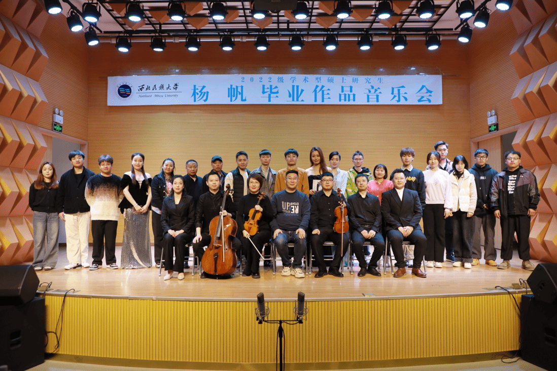 2024年10月23日,2022級學術型碩士研究生楊帆成功舉辦個人畢業作品音樂會。本場音樂會歷經一小時,音樂會曲目有鋼琴三重奏《秋思·夢境》、男高音獨唱《多想許你一生一世》、鋼琴獨奏《靈動·裂變》、女高音獨唱《我心如夢》和《點絳唇·黃花城早望》、大提琴獨奏《探戈魅影》、小提琴獨奏《浪漫曲》、鋼琴五重奏《幻》。參與本場音樂會的評審專家有王珊老師、張蕾老師、周麗娟老師。藝術指導劉一芃副教授,主持人劉馨璐。
