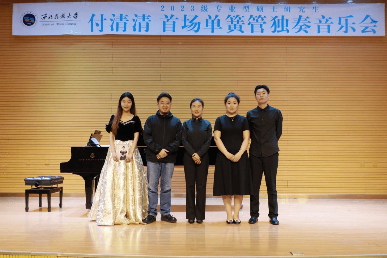 2024年11月18日,2023級專業型碩士研究生付清清成功舉辦首場單簧管獨奏音樂會。整場音樂會歷時1小時,共演奏三首曲目:莫扎特《A大調單簧管協奏曲》、路易吉?巴斯《清教徒主題幻想曲》、弗朗茲?克拉瑪《降E大調單簧管二重奏協奏曲》。本場音樂會藝術指導由王艷麗老師擔任,參加本次音樂會的評委老師有:楊艷霞,馬波,李朝華。