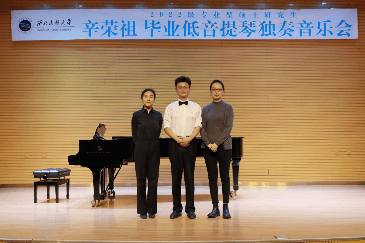 2024年11月11日,2022級專業型碩士研究生辛榮祖成功舉辦畢業低音提琴獨奏音樂會。整場音樂會歷時一個小時,共演奏了必奏曲目《庫賽維斯基#f小調低音提琴協奏曲》全樂章、《博泰西尼b小調低音提琴協奏曲》第一樂章、《格里埃爾為低音提琴和鋼琴而作的四首小品》的《前奏曲》與《塔蘭泰拉舞曲》,共三首作品。本場音樂會藝術指導由王艷麗老師擔任,參加本場音樂會的評委老師有劉暢、寧輝、楊艷霞,肖靖川主持。