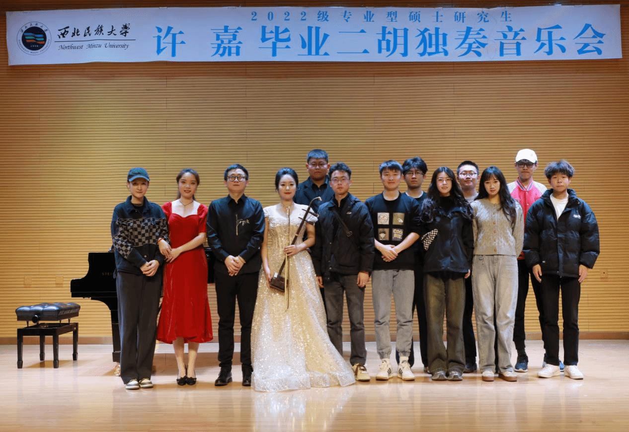 2024年11月13日,許嘉舉辦二胡獨奏音樂會。整場音樂會全程1小時,共演奏五首作品,其中傳統(tǒng)作品一首《月夜》、風格性樂曲一首《望長安》、二胡協(xié)奏曲三首《亂彈琴聲》《別亦難》《第六二胡狂想曲》。本場音樂會藝術(shù)指導由史洋老師擔任,主持人耿薇。劉慧、東保吉、王潔三位老師擔任評委。