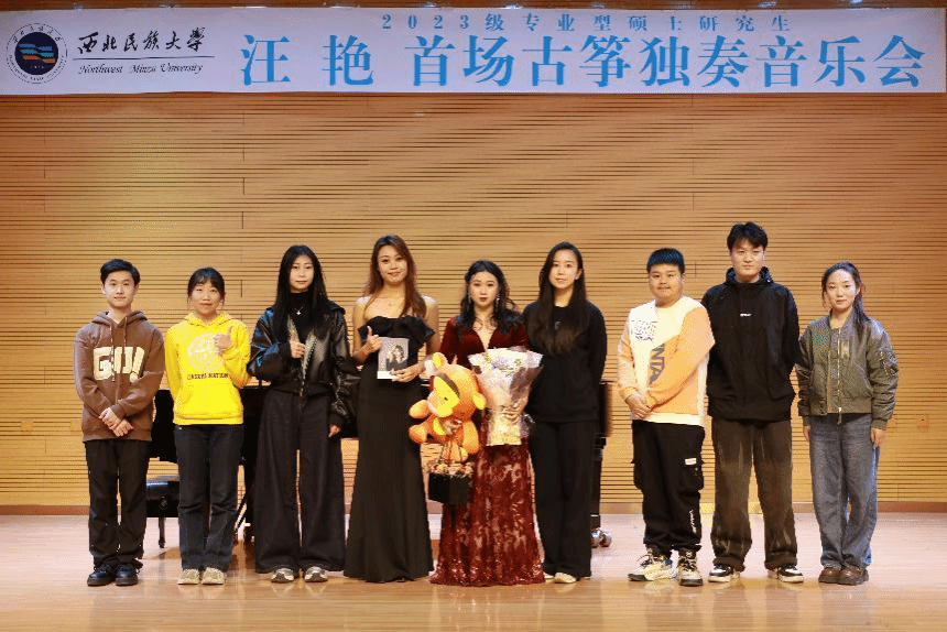2024年11 月19日,2023級專業型碩士研究生汪艷成功舉辦首場古箏獨奏音樂會。整場音樂會全程 1小時,共演奏四首作品,其中現代箏曲兩首《翠語》《溟山》;古箏協奏曲一首《云裳訴》;傳統箏曲一首《打雁》。本場音樂會藝術指導由卜文濤老師擔任,主持人劉馨璐。鄭穎、東保吉、王潔三位老師擔任評委。