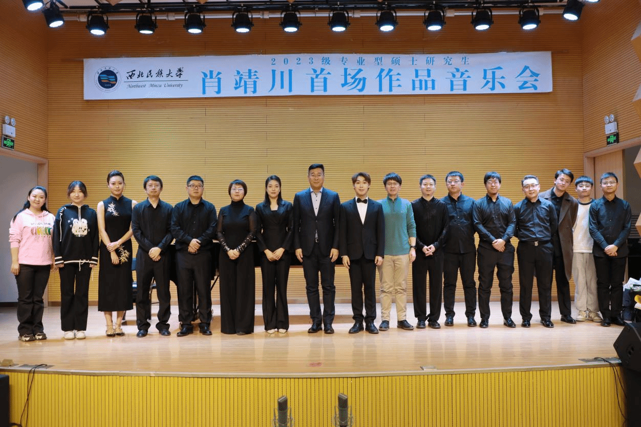 2024年12月6日下午16點,2023級專業(yè)型碩士研究生肖靖川成功舉辦首場作品音樂會。整場音樂會全程1小時,共八首作品,第一首作品為《花兒組曲》,共三首弦樂四重奏《大眼睛令》《依拉拉令》和《三三溜兒令》,一首重奏曲《梧桐令》,四首聲樂作品《與誰同坐》《雁門胡人歌》《在路上》《夢之旅》。本場音樂會藝術(shù)指導(dǎo)由劉一芃老師擔(dān)任,主持人劉馨璐。陳小寧、王珊、周麗娟三位老師擔(dān)任評委。