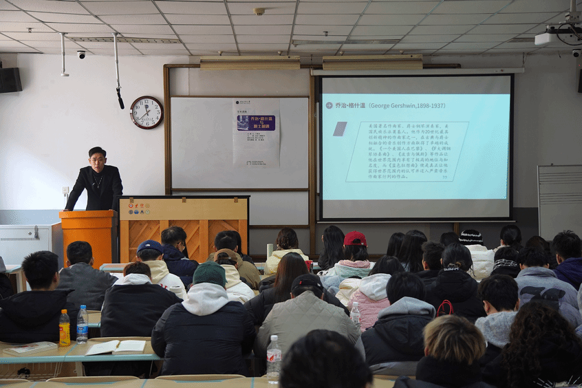 2024年11月25日,2022級學(xué)術(shù)型碩士研究生王琛昱成功舉辦學(xué)術(shù)講座。學(xué)術(shù)講座歷時40分鐘,內(nèi)容主要有喬治·格什溫的創(chuàng)作背景、爵士樂的產(chǎn)生與發(fā)展、《藍色狂想曲》的誕生等三部分。陳藝、張蕾、馬希剛?cè)?/span>位老師擔(dān)任評委。