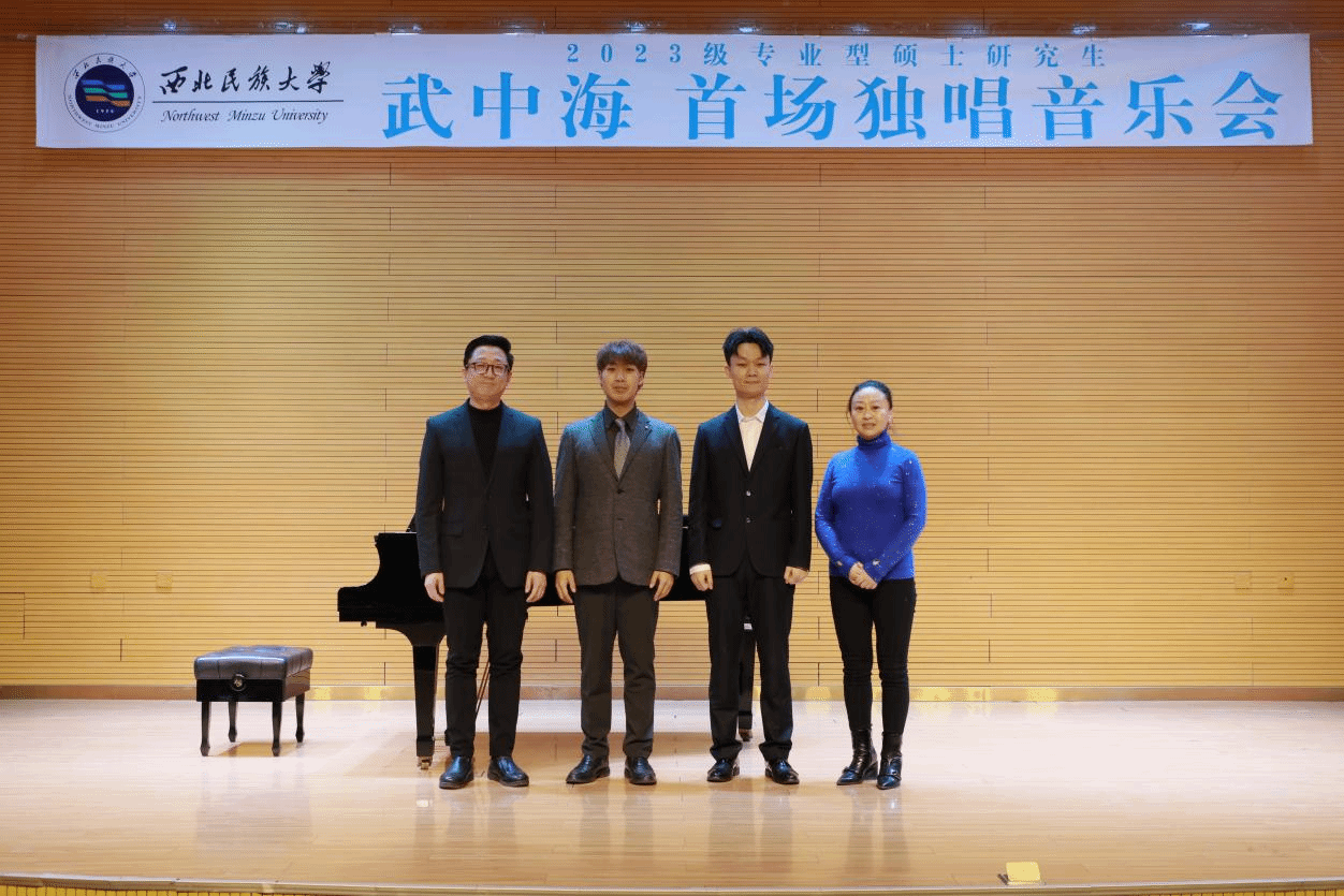 2024年11月29日下午14點,2023級專業型碩士研究生武中海成功舉辦首場獨唱音樂會。參加本場音樂會的評委老師有紅霞、邢延青、尹輝。整場音樂會歷時一個小時,共演唱了《理想佳人》《像天使一樣美麗》《再看一眼親人》《大江東去》等十二首作品,其中中國藝術歌曲4首,外國歌劇選段2首,中國古詩詞歌曲1首,民族歌劇選段1首,外國藝術歌曲4首。本場音樂會藝術指導由杜春輝老師擔任,主持人肖靜川。