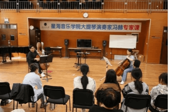 2024年4月25日,由星海音樂學院管弦系副主任、小提琴演奏家黃奕副教授領銜,星海音樂學院協作鋼琴與室內樂教研室教師李陽、星海音樂學院中提琴青年教師鐘華、廣州中山大學藝術學院大提琴教師馮赫來訪西北民族大學音樂學院。